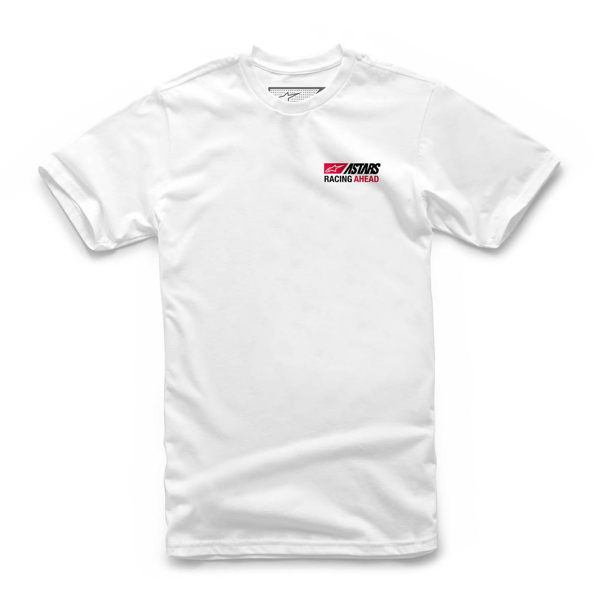 Weißes klassisches T-Shirt mit lässiger Grafik auf der Rückseite und kleinen Branding auf der linken Brustseite.