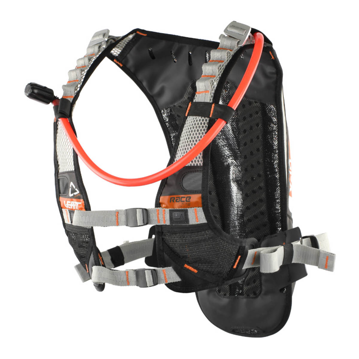 Schlank, ultra leicht, Handsfree Racing Trinkrucksack Passt perfekt mit oder ohne Nackenschutz Neues, einzigartiges, höhenverstellbares Harness Tragesystem für festen Sitz, AirLine Rückenbelüftung, 4-fache Trinkschlauchführung (links, rechts, ober oder unter dem Arm), isolierte Neoprentasche für Trinkblase, 2 Liter Flat Clean Tech Trinkblase, Rucksack mit 1 L Stauvolumen