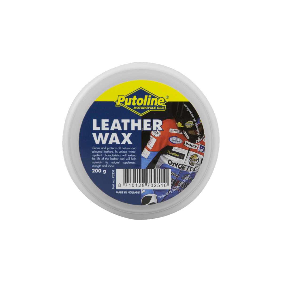Leather Wax ist ein wirkungsvolles Schutzmittel für Leder. Es restauriert und schützt alle Arten von Leder: gefärbt oder naturfarben, gebraucht oder neu. Mit Bürste, Schwamm oder Tauch auf Stiefel, Handschuhe, Jacken oder Lederkombi auftragen. Dann mit Haartrockner erhitzen und in das Leder einziehen lassen. 200g