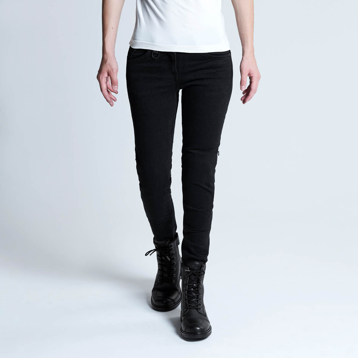 SPIDI J-Tracker Damenjeans: die vielseitige Motorrad-Denim-Jeans, ideal für jede Art von Motorrad; mit dem bewährten SPIDI Cordura®/Baumwoll-Mischgewebe. Die Jeans bietet einen enormen Komfort und einen lässigen Look. Inklusive der Warrior Lite Knieprotektoren (EN 1621-1:2012 zertifiziert) sind dank des externen Reißverschlusses leicht verstellbar und abnehmbar.