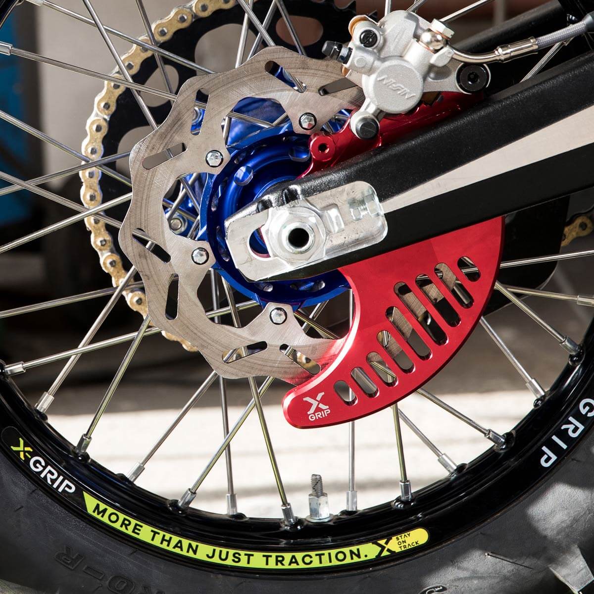 Der Bodyguard für deine hintere Bremsscheibe ist aus einem Stück Aluminium gefräst, ersetzt den Bremssattelträger und bietet maximalen Schutz.